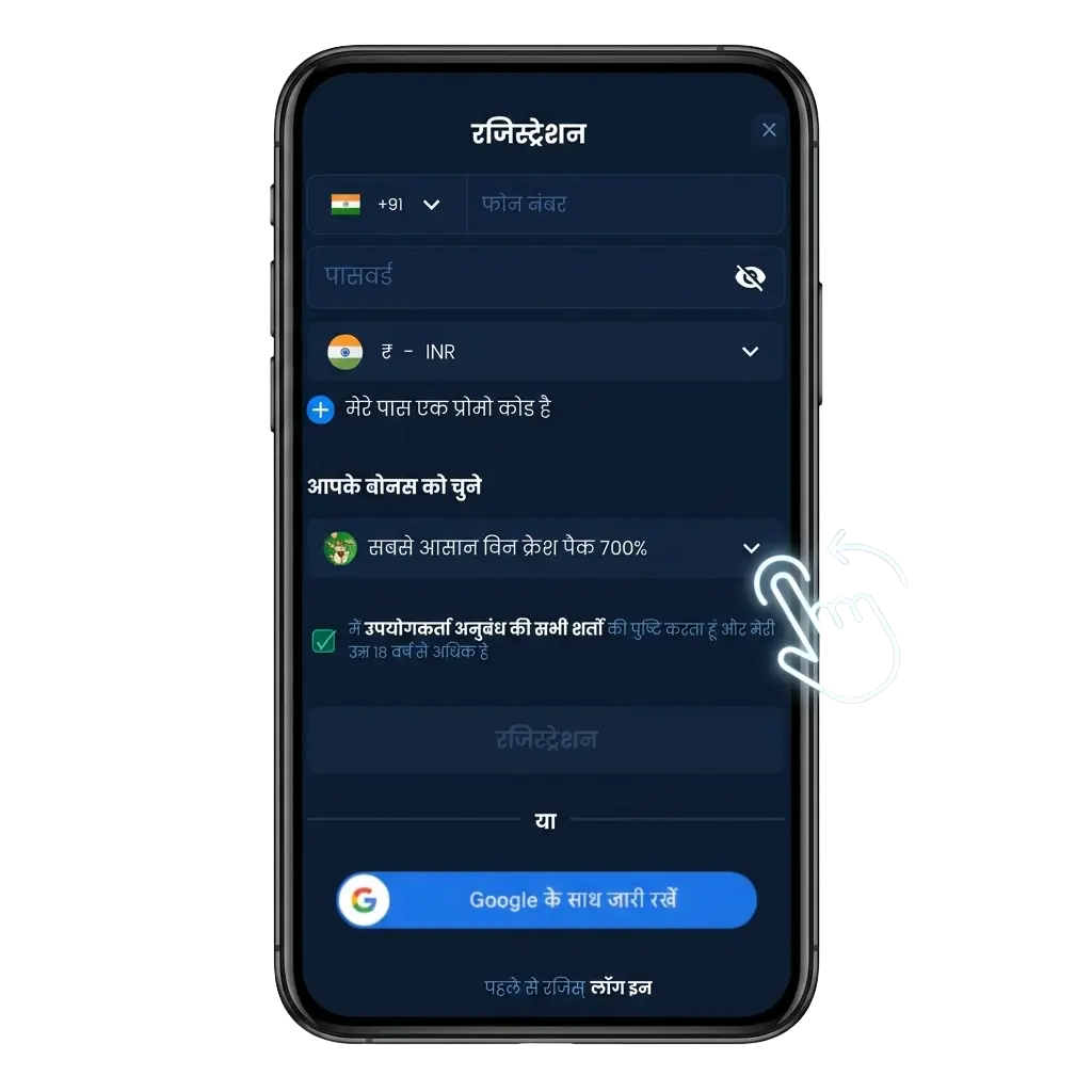 Deposit a minimum of INR 100, and the bonus matches your deposit up to the maximum limit. Wagering requirements apply, so review the bonus terms in the app before claiming. The offer is available to all newly registered players who have not made a previous deposit.